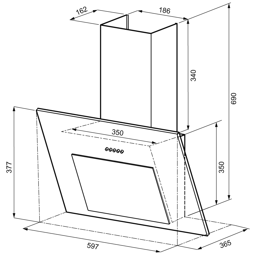 KRONA VIERKANT 600 BLACK PB; вытяжка кухонная 600 мм (арт, KRHD175)
